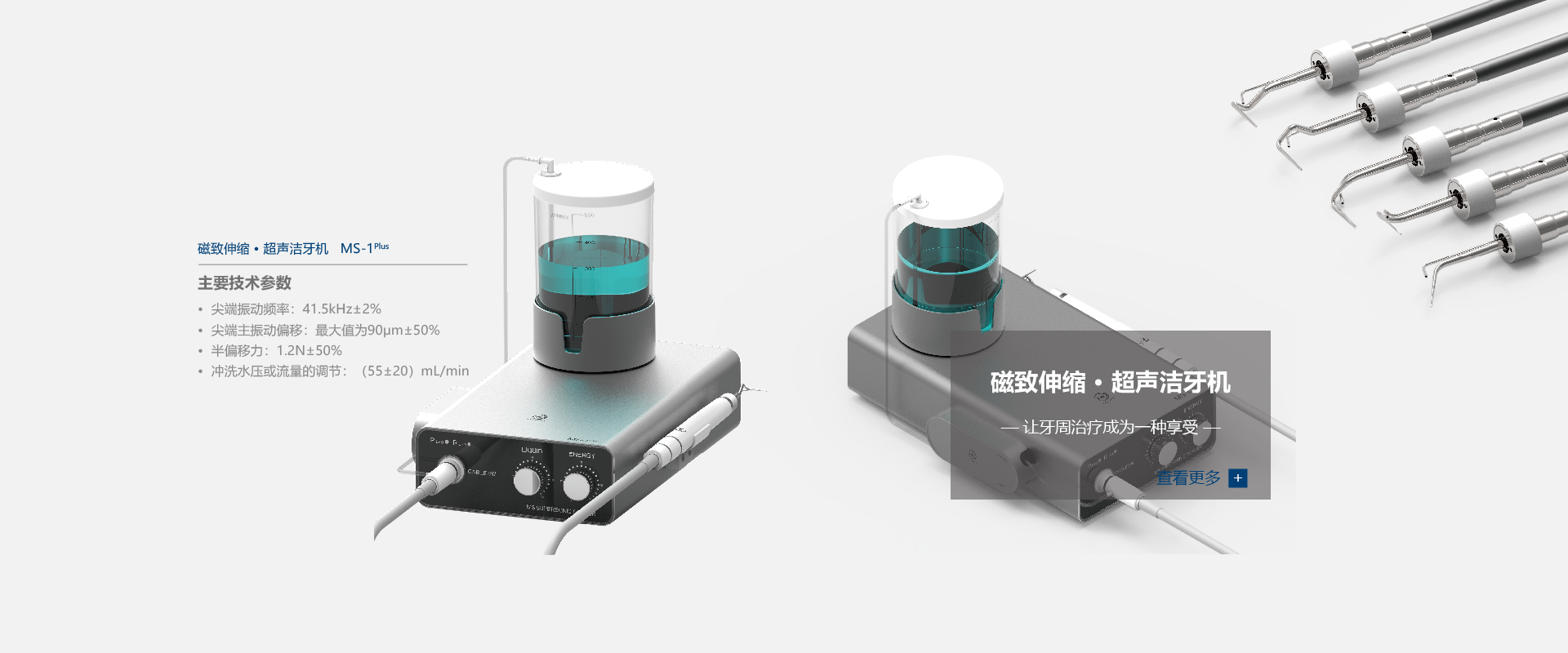 公司致力于磁致伸縮及數(shù)字影像技術(shù)在口腔醫(yī)療器械領(lǐng)域 的應(yīng)用,目前擁有3項(xiàng)發(fā)明專(zhuān)利、5項(xiàng)實(shí)用新型專(zhuān)利和2項(xiàng) 外觀專(zhuān)利。公司當(dāng)前主營(yíng)產(chǎn)品為牙周治療移動(dòng)工作站,具 體包括磁致伸縮·超聲潔牙機(jī)、高清晰度·數(shù)字口腔觀察儀 、全向轉(zhuǎn)動(dòng)·多功能移動(dòng)醫(yī)療推車(chē)及配套耗材。